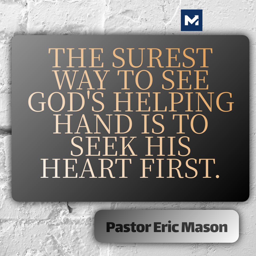 Remember: The surest way to see God's helping hand is to seek His heart first. When God moves, you move - but let Him be responsible for the results.